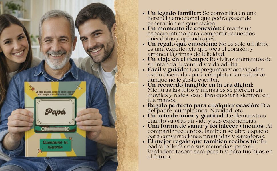 • El resultado: No le estás dando un objeto, le estás dando un «proyecto de vida». Cuando lo termine y te lo devuelva, tendrás el tesoro más valioso de la familia: su propia biografía. Es un acierto seguro que emociona hasta al padre más duro. Enlace AQUÍ.